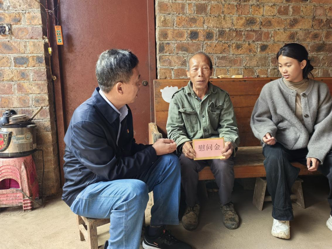 此外,吴代生一行还前往玉峰村,看望学院派驻的工作队员詹建祥。期间,吴代生详细询问了他在驻村期间的工作开展情况与日常生活情况,对他扎根基层、辛勤付出所取得的工作成绩给予了充分肯定,并送上慰问金,鼓励他继续坚守岗位,为当地乡村振兴事业贡献力量。
