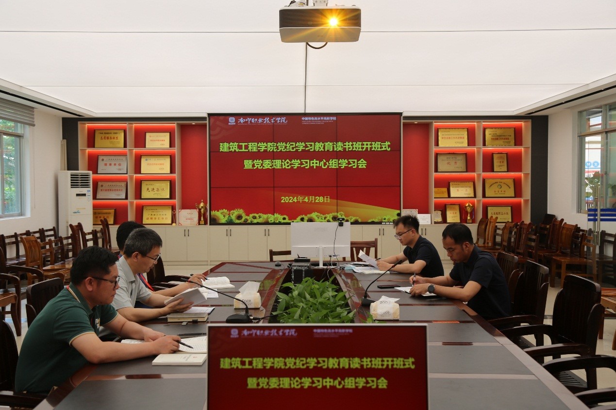 4月28日,学院举办党纪学习教育读书班开班式暨党委理论学习中心组学习会,深入学习贯彻落实党中央关于开展党纪学习教育的部署要求,认真学习领会新修订的《中国共产党纪律处分条例》。学院党委书记、院长陈纲主持会议并作开班讲话。