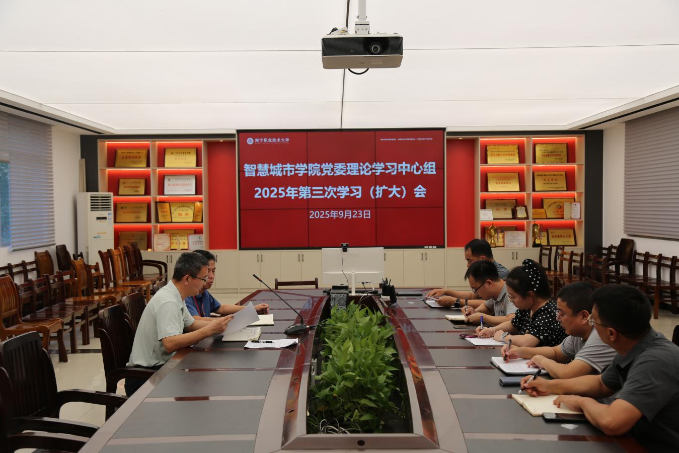 9月23日,学院召开党委理论学习中心组2025年第三次学习(扩大)会,深入学习领会习近平总书记关于铸牢中华民族共同体意识,关于加强社会工作、提升社会治理效能的重要论述,学习《习近平谈治国理政》第五卷、《论坚持全面深化改革》等内容。学院党委书记陈纲主持会议并讲话,学院党委副书记吴代生作了中心发言。