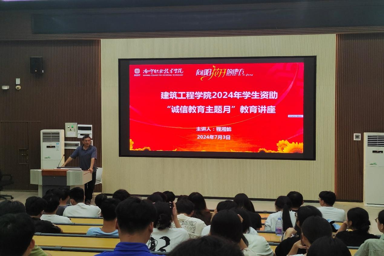 为进一步引导受助学生树立诚信观念,珍惜个人信用,增强法律意识和契约精神,2024年7月3日,bwin中国官方网站在第三教学楼第四阶梯教室举办2024年诚信教育主题讲座,讲座邀请学院学生管理中心程湘能主讲,2022级和2023级的副班长和学生代表参加。
