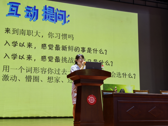讲座伊始,谢春来以轻松的互动环节开启话题,邀请在场新生分享入学初体验。同学们踊跃发言,表达了对新环境的期待与忐忑,现场气氛热烈。随后,讲座自然转入人际关系建设主题,谢春来通过生动的视频案例和真实事例,详细讲解了“主动示好、面带微笑、记住他人姓名”等人际交往技巧,强调良好的人际关系需要主动出击,更需要掌握“不含敌意的坚决”这一智慧,既要保持适当边界,又要给予他人真诚尊重。